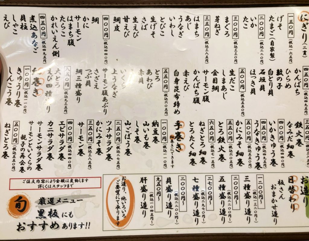 注意点としては、すべて2貫ずつの表記であることと生ビールが無いことでしょうか。